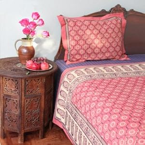 Product Description : Rest your head upon our 100% cotton decorative flanged pillow shams and let sweet slumber gently erase your worldly cares away. Accessorize lavishly and complete the look of your exotic handcrafted bedding ensemble by picking pillow shams / covers that either match or complement your choice of duvet cover or bedspread.Each pillow cover is sized to fit standard pillows that are 21 inches long and 27 inches wide. The outer dimension including a 2 inch flange is 25x31 inches. Each pillow sham is printed on preshrunk, superior grade, soft cotton and is exquisitely finished with neatly interlocked seams and a generous, immaculately tailored flap closure at the back (inserts not included).Each piece is handcrafted using intricately hand carved wooden blocks and is an original work of art distinguished by the work of the artisan, the particular lot of dye, and even varying weather conditions. Tonal variations are inherent to the block printing process and enhance the individuality, character and uniqueness of each creation.Inspiration for India Rose: India Rose is inspired by the Palace of Winds (Hawa Mahal) in the city of Jaipur, a majestic example of Rajput architecture built in 1799 by Maharaja Sawai Pratap Singh. The palace is painted a characteristic rose pink and consists of 953 delicately honeycombed sandstone windows that allow the breeze (hawa) to circulate through, keeping the palace deliciously cool in the hot summer months. India Rose attempts to capture the magical effect of the late evening sun-rays as they bathe the palace in rosy golden light creating an radiant illusion from an enchanting, time kissed fairytale.